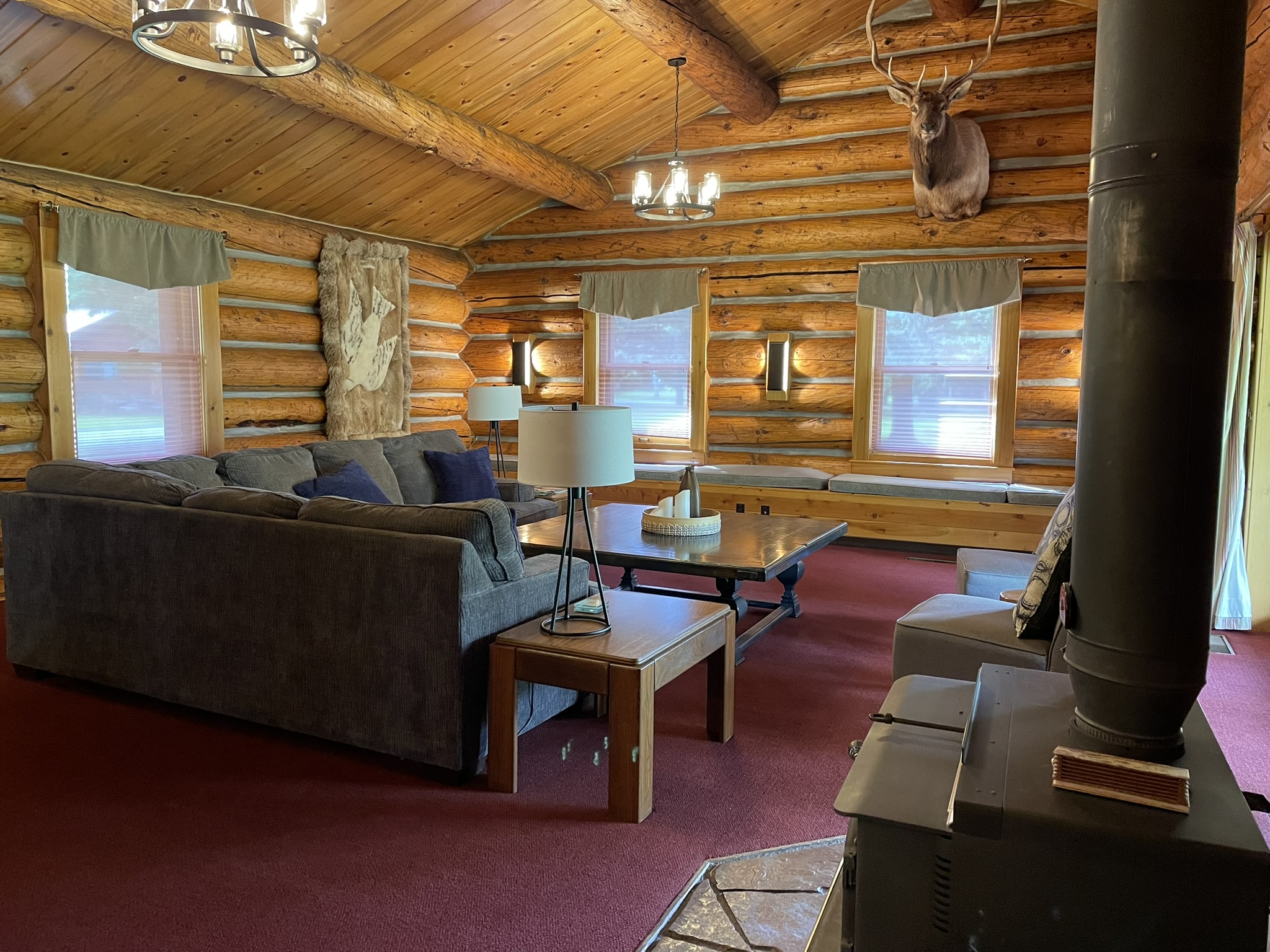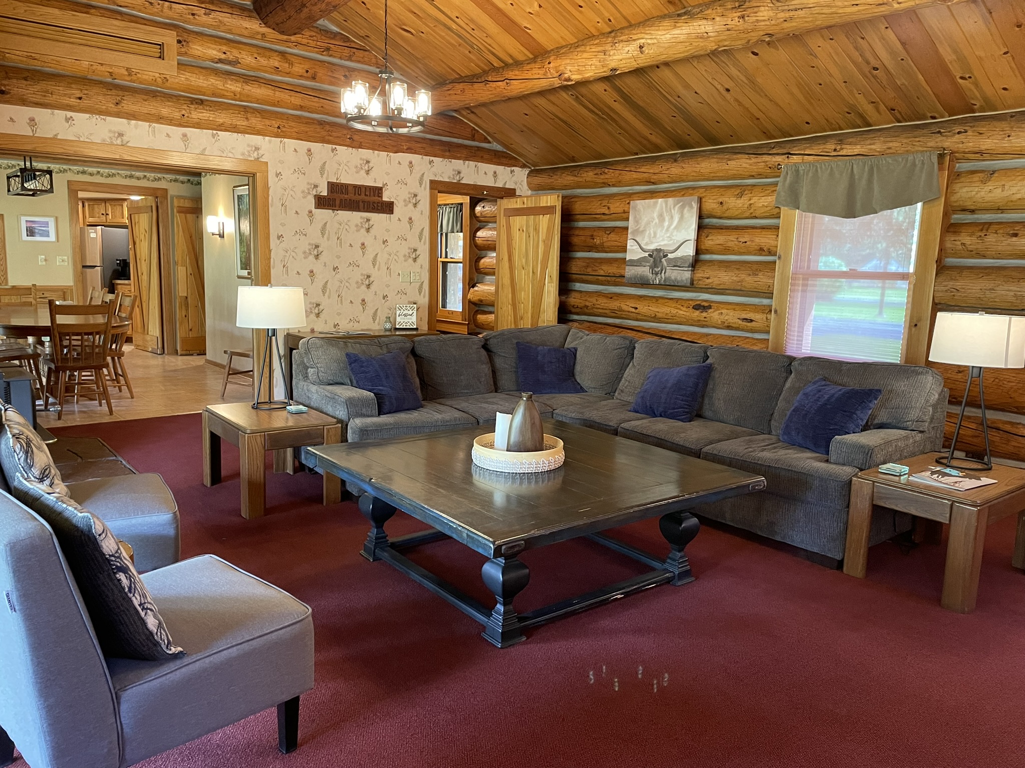 This room is part of a two-story, eight-bedroom cabin.