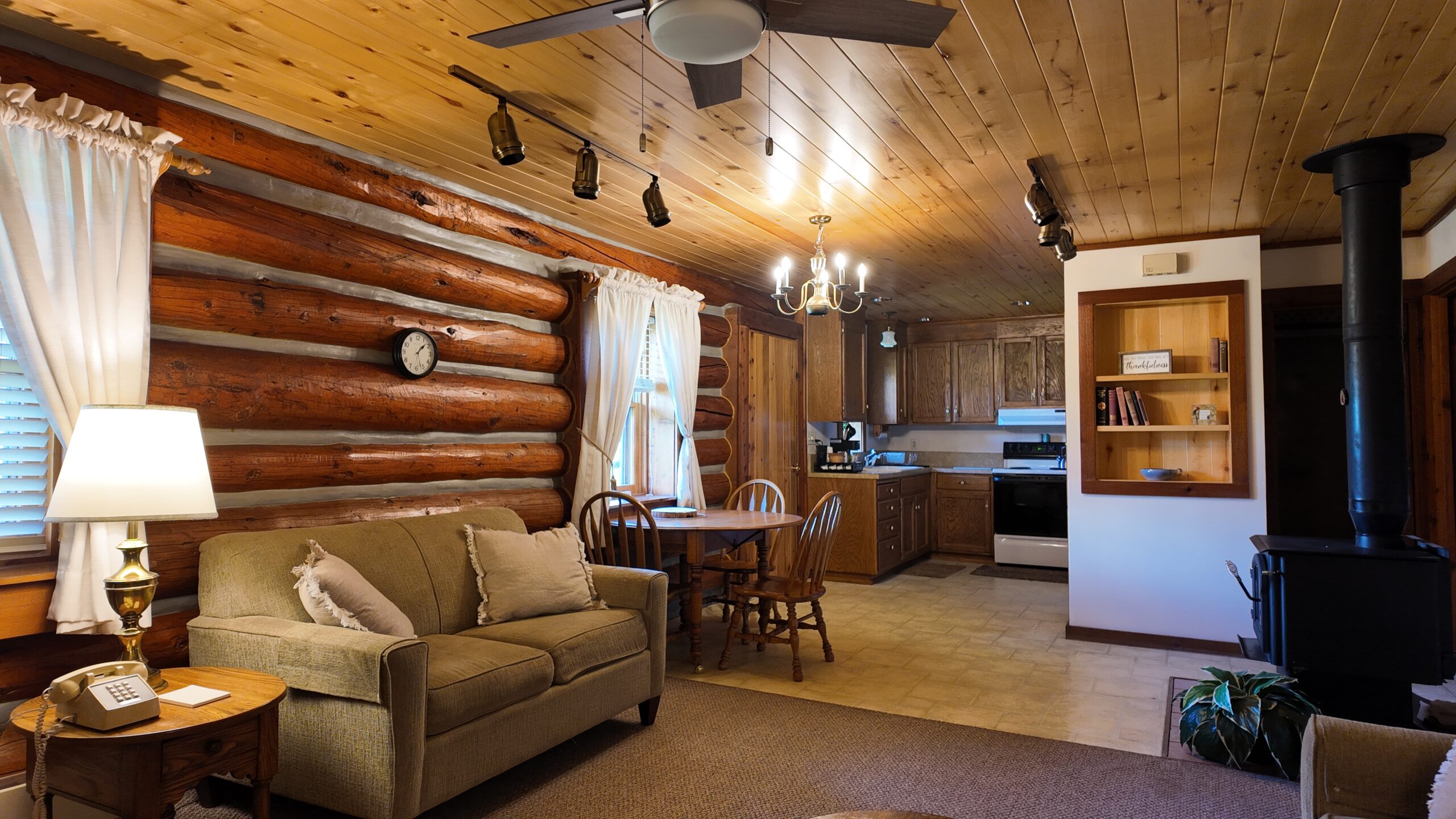 This apartment is located on the first floor of The Gunnison triplex. It has two bedrooms, a bathroom, a full kitchen, a living room, and a wood stove. This apartment has access to an outside deck with a porch swing. Centrally located, you can often watch deer graze in the mall.